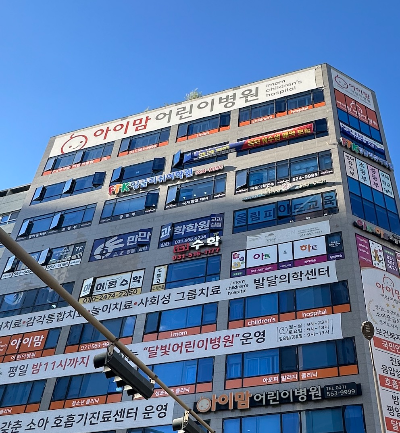 2~5층 그리고 10층이 아이맘어린이병원입니다. 6층에 가우스 수학학원 외에, 강한컨설팅, 아이원수학학원, 아트앤 하트 등이 있고 7층에 음악학원, 만만과학학원, 유투엠 수학학원이 있습니다. 8층에 FTK 어학원이 있고, 9층에 유명한 이투스247 다산점이 있습니다.