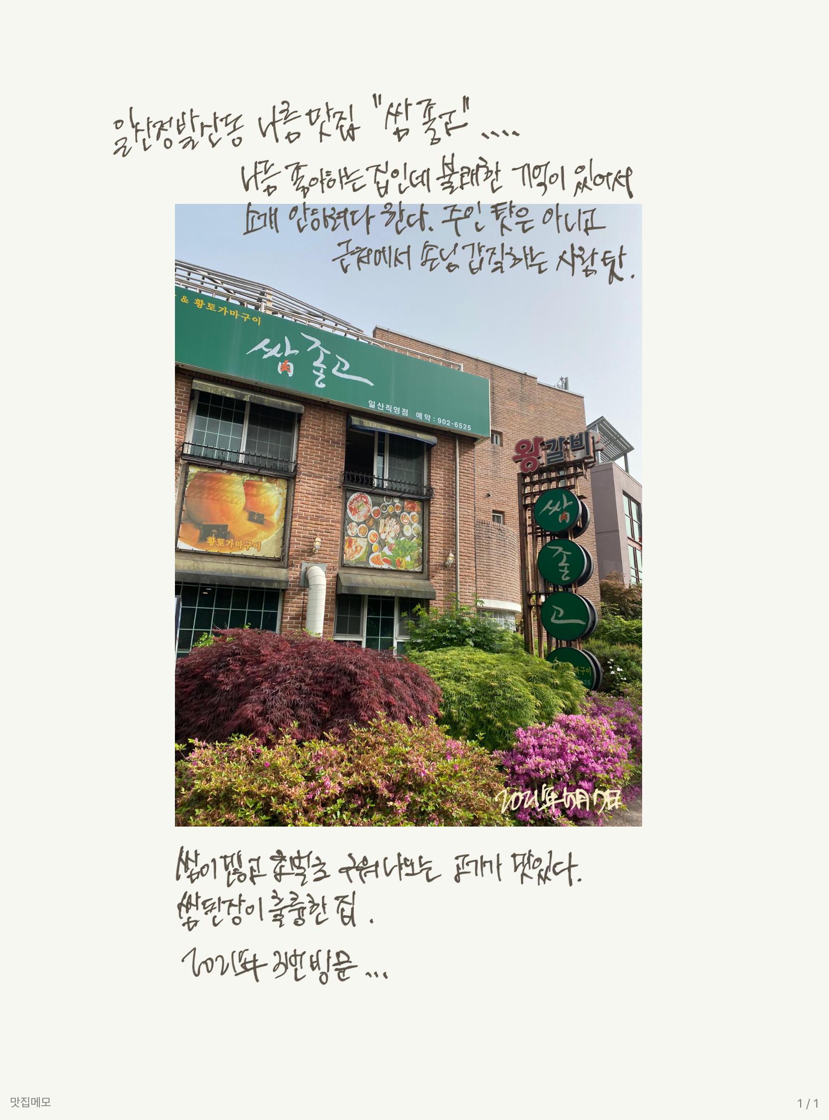 일산 정발산 주택가의 쌈 집, 주인 장은 일류인 것 같은데, 오는 사람들이 일류가 아닌 느낌이 든다. 밭은 기침을 하는 어르신을 두고 불쾌하니 나가달라는 이야기를 했다고 한다. 그럴려면 왜 공공장소에 오는지. 무엇이 매너인지 구분을 못하는 사람들. 이런 경우 난 유난 맞다는 생각을 한다.